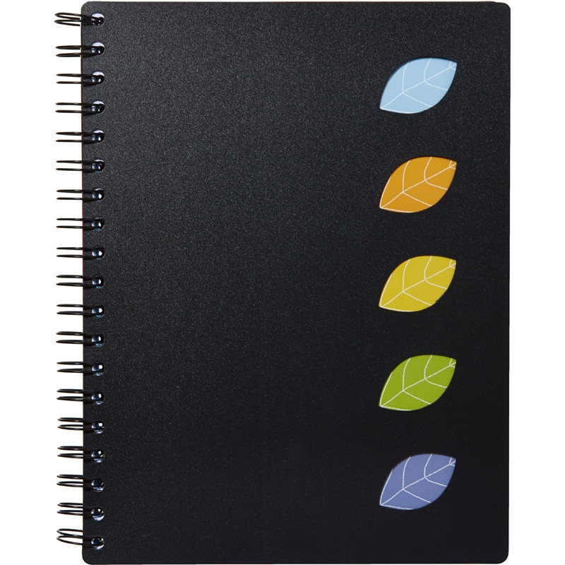 Бизнес-тетрадь Attache Office Creative в строгом офисном стиле формата А4-. Размер изделия - 195x245 мм. Содержит 120 листов (240 страниц) из экстра белой офсетной бумаги оптимальной плотности 70 г/кв.м. в клетку. Размер блока - 174x244 мм. Твердая обложка c вырубкой изготовлена из полипропилена черного цвета, защищает бумагу от деформации и загрязнения. Внутренний блок скреплён по левому краю металлической спиралью. Тетрадь имеет 5 цветных съемных пластиковых разделителей, которые разбивают блок на тематические разделы, что очень удобно для ведения записей по нескольким предметам. Разделители цепляются на замках к спирали, что позволяет перемещать их в любое нужное место блока.