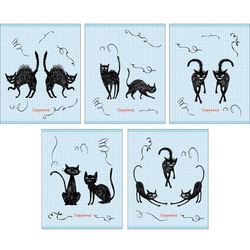 Тетрадь. Формат: А5. Количество листов: 96. Линовка: клетка. Внутренний блок: офсет 60 г/м2. Крепление: скрепка. Обложка: мелованный картон. Отделка обложки: выборочный лак, черные блестки.