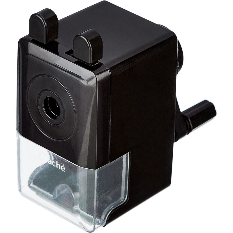 Механическая точилка для карандашей Attache Economy выполнена в корпусе из пластика черного цвета. Легкая и безопасная в использовании точилка оснащена металлическим сердечником и удобной ручкой, что позволит максимально быстро заточить большое количество карандашей. Предназначена для круглых, трехгранных или шестигранных карандашей диаметром до 8 мм. Ограничений по длине карандаша нет. Точилка имеет вместительный контейнер для сбора стружки. Размер точилки: 90x90x45 мм. Инструкция по использованию: 1. Оттяните до упора прижимной механизм, располагающийся над контейнером для стружки; 2. Нажмите на маленькие рычаги в верхней части точилки для раскрытия креплений(зубов) в отверстии; 3. Поместите карандаш в отверстие до упора; 4. Отпустите рычаги для фиксации карандаша; 5. Придерживая точилку сверху, проворачивайте ручку до тех пор, пока она не будет проворачиваться вхолостую; 6. Нажмите на язычки и, удерживая, выньте карандаш из точилки. По заполнении контейнера для стружки требуется его очистка во избежание поломок и блокировки точилки. Рекомендована для использования дома и в офисе. Относится к сегменту суперэконом - товар с минимальными требованиями к качеству для тех, кто хочет сэкономить. Товар отвечает основным характеристикам.