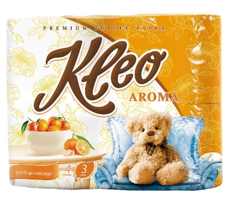 Туалетная бумага "Kleo" Aroma 3-х сл. Мандарин 4шт/уп с98
