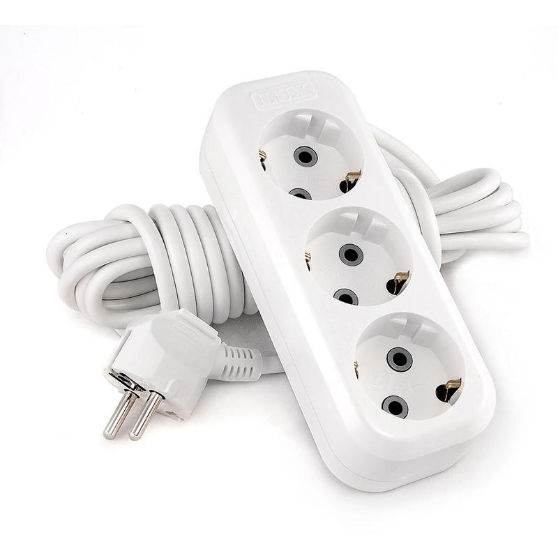Удлинитель сетевой LUX предназначен для подключения электроприборов. Корпус выполнен из ABS пластика. Внутри дополнительная негорючая вставка.Провод ПВС. Длина провода 3 метра. Максимальная суммарная мощность подключаемых электроприборов 3,6 кВт. Срок службы 5 лет. Гарантийный срок 1 год.