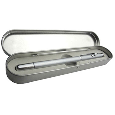 Лазерная металлическая указка оснащена светодиодом и красным лазерным лучом с радиусом действия до 200 метров. Многофункциональная - помимо использования для презентаций может применяться в качестве магнита и имеет пишущий шариковый стержень. Корпус выполнен в виде ручки с карманным зажимом для удобства хранения и использования. Поставляется в подарочном футляре, с элементами питания типа LR 41 в комплекте(3шт.). Мощностью 5 mw. Стержень: диаметр 2,2 мм, длина 55мм.
