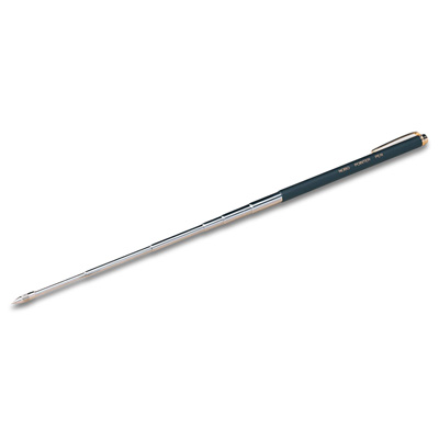 Указка телескопическая, в черном металлическом корпусе, также обладает функцией ручки(синие чернила). Размер 14x82x236 мм. Колпачковая гайка закрывает пишущий конец ручки. Указка вытягивается до 625мм. Корпус выполнен в виде ручки с карманным зажимом для удобства хранения и использования.