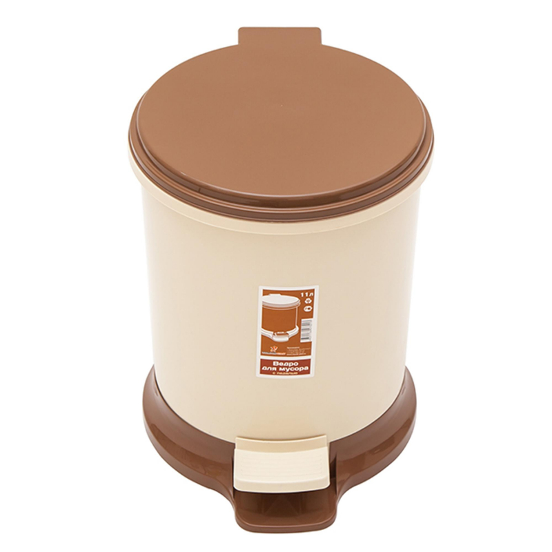 Ведро мусорное с педалью Элластик-Пласт 11 л пластик бежевое/коричневое (29.5x32.5 см) Подходит как для использования внутри помещения, так и для уличной зоны. Размер контейнера: высота 32,5 см, диаметр/ширина 29,5/25,5 см. Цвет: контейнера - бежевый, крышки и основания - коричневый. Вес: 0,98 кг. Относится к сегменту 'суперэконом' - товар с минимальными требованиями к качеству для тех, кто хочет сэкономить. Товар отвечает основным потребительским характеристикам.