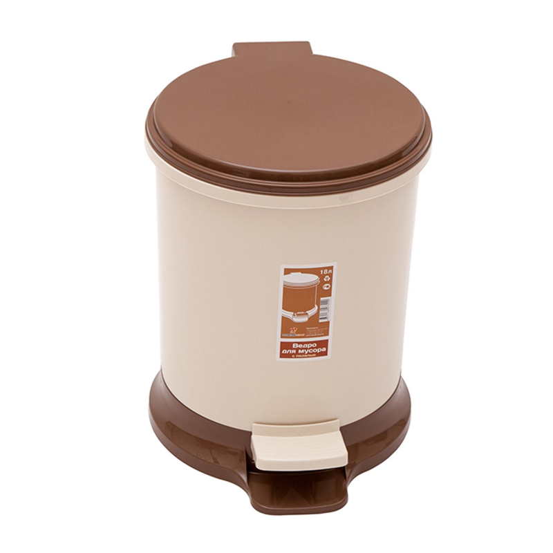Ведро мусорное с педалью Элластик-Пласт 18 л пластик бежевое/коричневое (35x38.5 см) Подходит как для использования внутри помещения, так и для уличной зоны. Размер контейнера: высота 38,5 см, диаметр/ширина 35/30 см. Цвет: контейнера - бежевый, крышки и основания - коричневый. Вес: 1,46 кг. Относится к сегменту 'суперэконом' - товар с минимальными требованиями к качеству для тех, кто хочет сэкономить. Товар отвечает основным потребительским характеристикам.