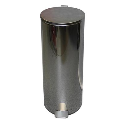 Стационарная урна с педалью выполнена из зеркальной нержавеющей стали (цвет хром). Отличается прочностью, устойчивостью к вмятинам, легко моется обычными средствами и водой. Размеры урны — 25×60 см, объем — 30 л.