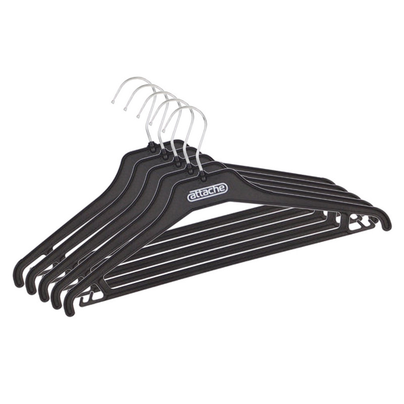 Плечики из пластика черного цвета предназначены для одежды размера 44-46 с небольшим весом. Крюк-держатель металлический. Внизу крючки для вещей со специальными петлями, перекладина для юбок и брюк. Цена указана за упаковку, в упаковке 5 вешалок.Изображения товаров на сайте не могут гарантировать точную цветопередачу.