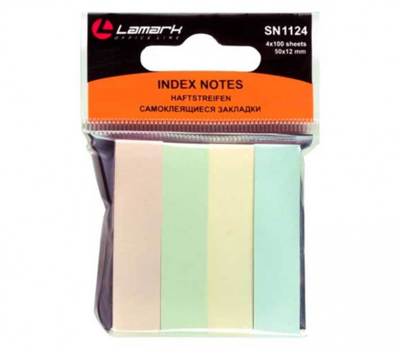 Закладки клейкие бумажные 12х50 мм Lamark 4 цв. пастель по 100 л. арт.SN1124