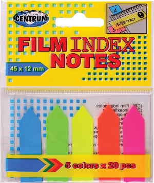 Клейкие СТРЕЛКИ-индексы,45*12 мм, 5 неоновых цветов по 20 листов в ПВХ упаковке с подвесом, пластиковые.