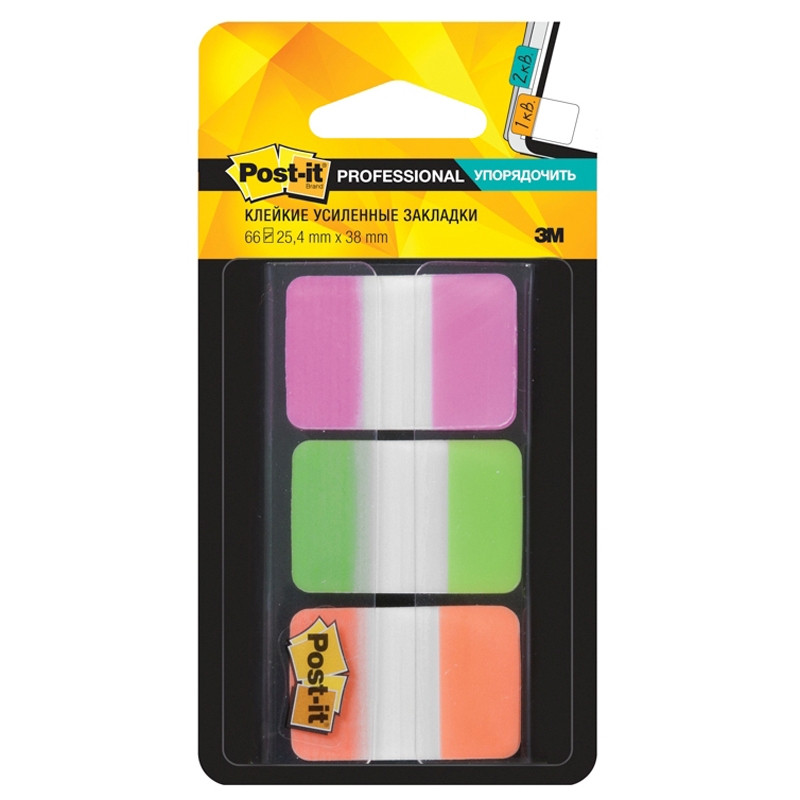 Закладки клейкие пластик 25х28 мм 3цв. по 22 листа неон Post-it 686PGO