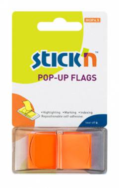 Закладки клейкие пластик 25х45 мм Stick Hopax 50 листов оранжевая POP-UP 26012