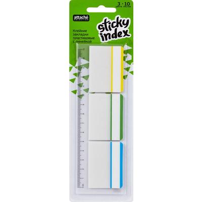 Закладки клейкие пластик 37х50 мм Attache Selection 3 цв. 10 листов + линейка 12см