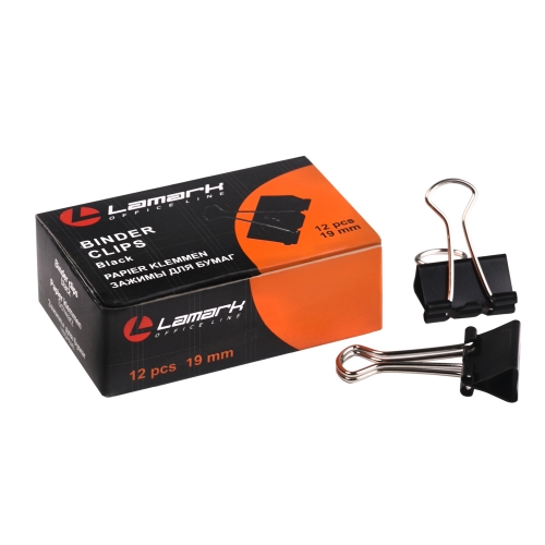 Артикул:BC0540, Название:Зажимы для бумаг черные 19мм 12шт, Торговая марка:Lamark, Страна:Германия, Упаковка:12/300