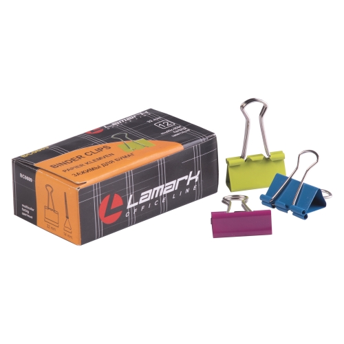 Артикул:BC0689, Название:Зажимы для бумаг цветные 32мм НЕОН 12шт, Торговая марка:Lamark, Страна:Германия, Упаковка:12/120