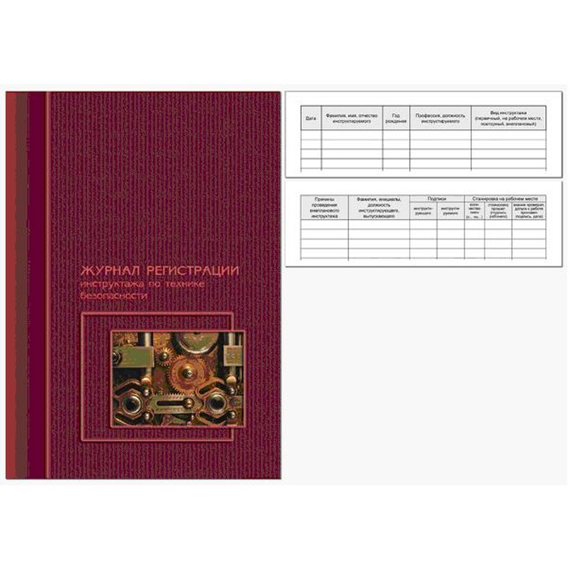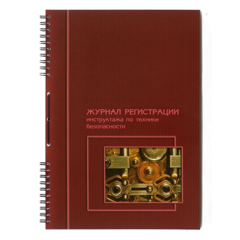 Журнал регистрации инструктажа по технике безопасности (формат А4). Обложка коричневого цвета выполнена из мелованного картона. Внутренний блок — офсетная бумага, 96 листов. Журнал скреплен с помощью спирали и шнуровки.