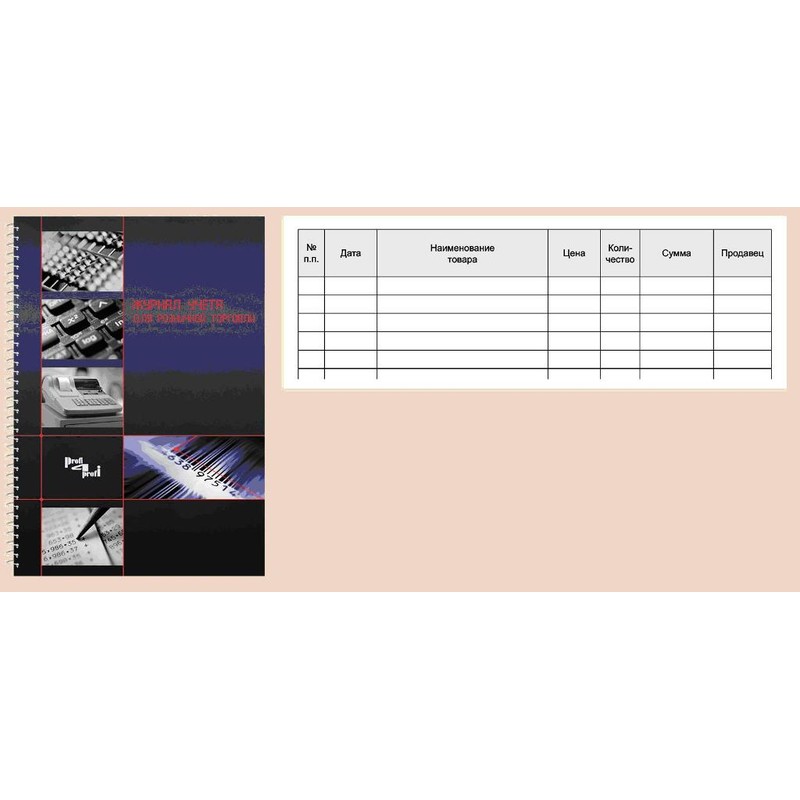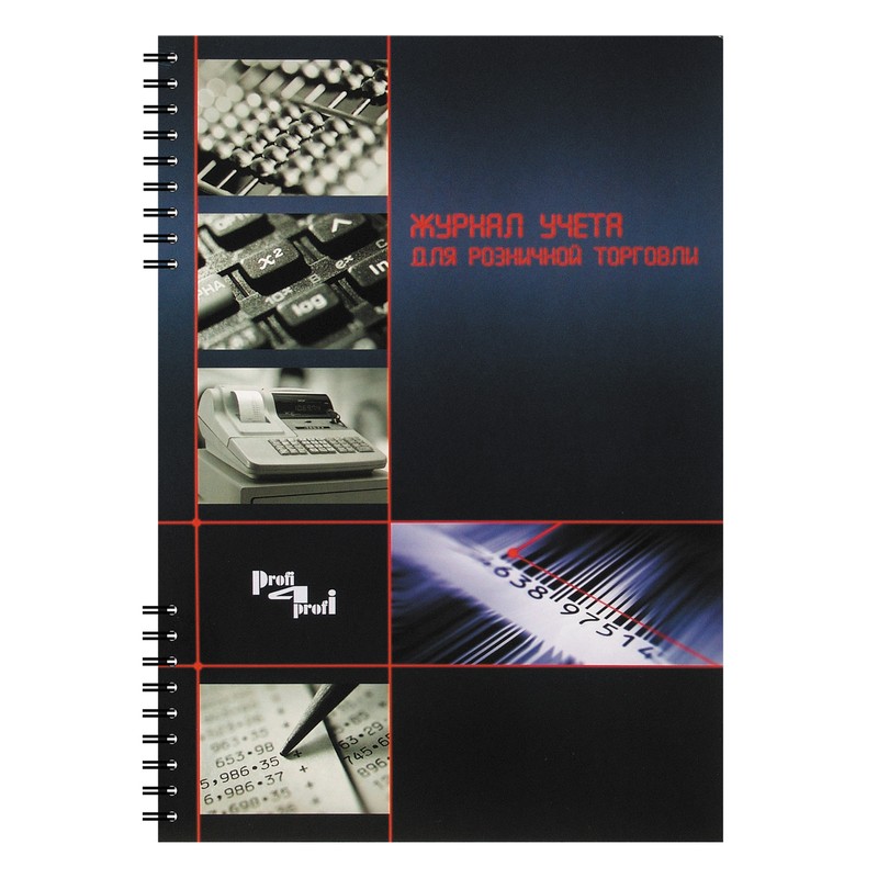 Журнал учета розничных продаж (формат А4). Обложка темно-синего цвета выполнена из мелованного картона. Внутренний блок — офсетная бумага, 96 листов. Журнал скреплен с помощью спирали.