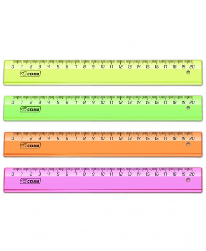 Линейка 20 см пластиковая СТАММ ЛН-111 NEON Cristal оранжевая
