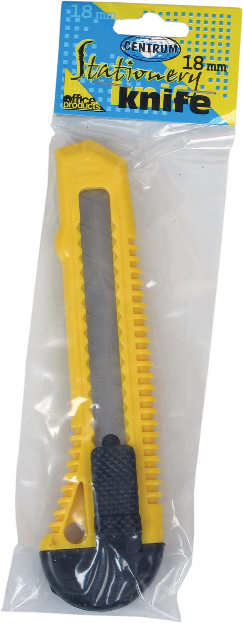 Нож канцелярский, 18мм в индивидуальной упаковке с европодвесом.
