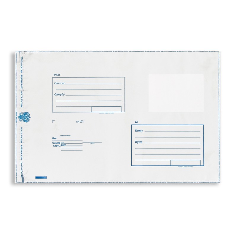 Почтовые полиэтиленовые пакеты С4, размером 229×324 мм, предназначены для упаковки всех видов почтовых отправлений (писем, бандеролей, мелких посылок) максимальным весом до 7 кг. Благодаря использованию почтового пакета значительно сокращается время упаковки. Почтовые полиэтиленовые пакеты выполнены из трехслойного непрозрачного полиэтилена, имеют почтовый подсказ «Куда-Кому» и снабжены отрывной клейкой лентой. Пакет обеспечивает высокую степень защиты, упакованной в него почты, отличается высоким качеством, прочностью, практичностью, имеет неограниченный срок хранения. в упаковке 500 штук.