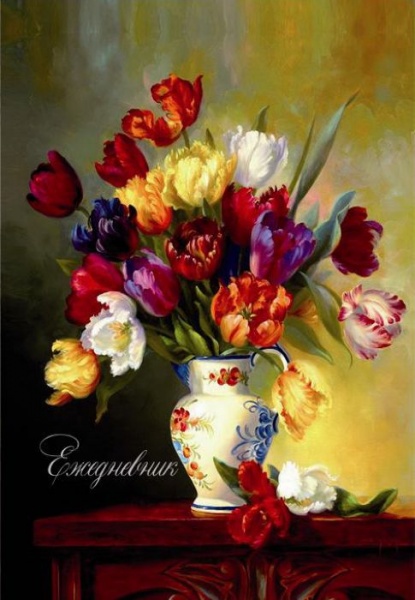 Ежедневник недатированный А-6 "Феникс" арт.33882 "Букет тюльпанов" 96 листов обл. 7БЦ глянц/пленка