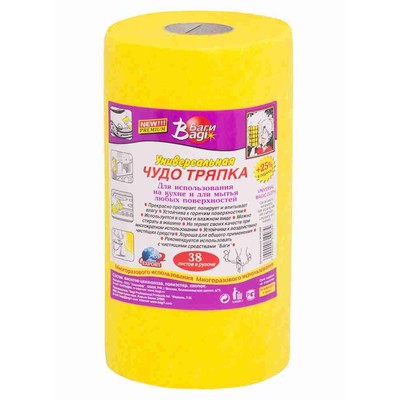 BAGI ЧУДО-ТРЯПКА "УНИВЕРСАЛЬНАЯ", 25Х23 СМ / 38 ЛИСТОВ В РУЛОНЕ для использования на кухне и мытья любых поверхностей; рулон, нетканое полотно повышенной плотности.