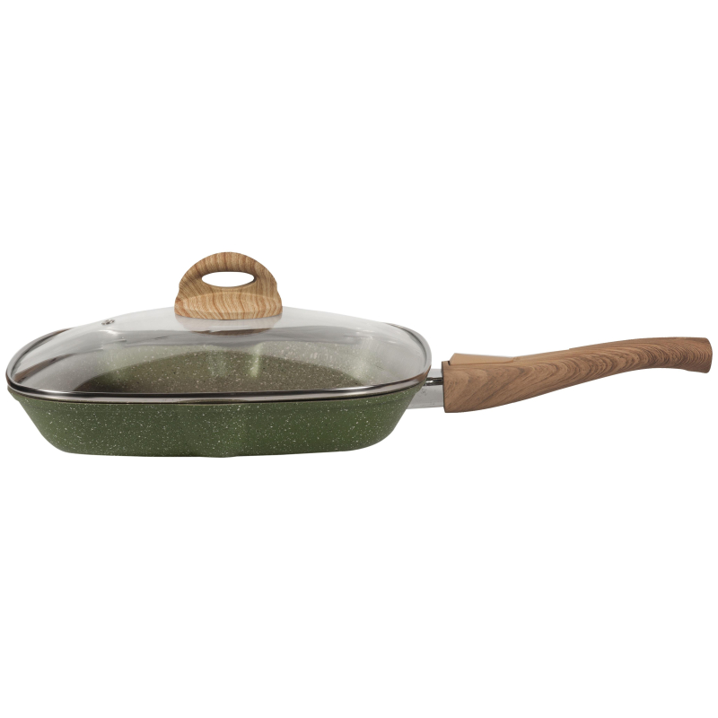 Качественная антипригарная сковорода Panairo обладает уверенной прочностью корпуса и покрытия. Посуда глубокая за счет высоких стенок, а их большая толщина лучше распределяет тепло, позволяет использовать разные температурные режимы с наибольшим эффектом и предотвращает попадание частичек еды за пределы чаши. Это позволит надолго сохранить чистоту Вашей кухни. Толщина дна составляет 5 мм - это толщина премиум-класса, в то время как на рынке посуды средняя толщина ~1. 8 мм! Это исключает деформацию корпуса, гарантирует ее долговечность, идеально распределяет нагрев по всей поверхности, обеспечивая длительное сохранение тепла, благодаря чему еда не пригорает и равномерно прожаривается. Посуда изготовлена из литого алюминия. Это говорит о том, что сковорода прослужит долгое время, гарантируя прочность и качество. Безопасное, пятислойное усиленное антипригарное покрытие, нанесенное методом напыления, во много раз лучше, чем покрытия по методу 'наката', сохраняет антипригарные свойства на долгие годы и не выделяет вредных веществ. Посуда, произведенная методом напыления, служит намного дольше. Посуду можно мыть в режиме 'ЭКО' в посудомоечной машине, но дно темнеет. Подходит для всех типов плит, кроме индукционных.