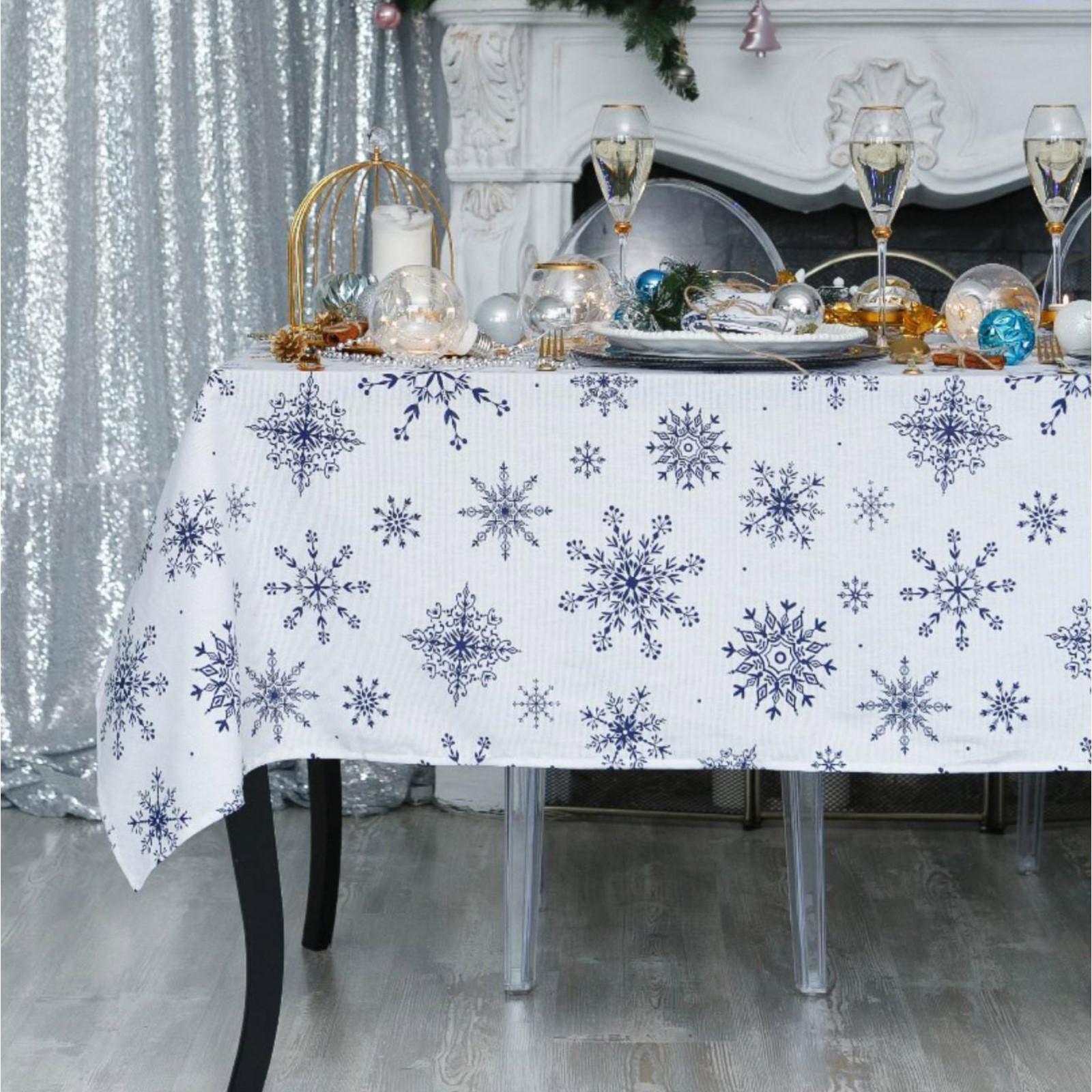 Скатерть 1,5х1,8 Доляна Синие снежинки хлопок арт.4478737