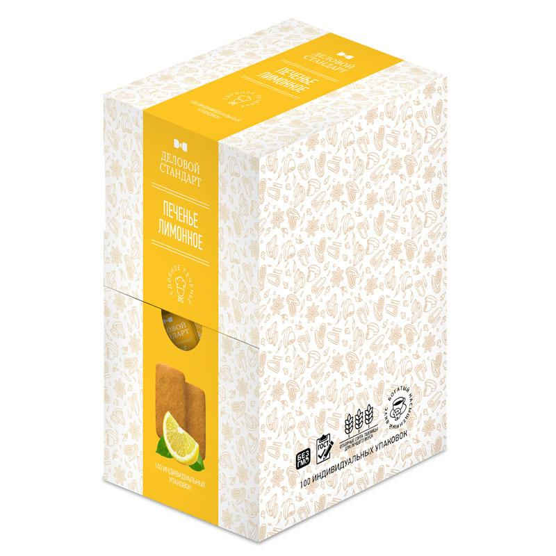 Печенье 'Деловой Стандарт' - хрустящее печенье, на основе пшеничной муки с лимонным вкусом. Отлично подойдет для небольшого перекуса за чайной паузой дома или на работе! Каждое печенье упаковано индивидуально, поэтому его удобно брать с собой, а также расположить в зонах переговорной, шоу-рума или ресепшн. Хрустящий вкус и пряный ароматный - заряд энергии на целый день. Состав: мука пшеничная хлебопекарная в/с, маргарин (рафинированные дезодорированные масла в натуральном и модифицированном виде (пальмовое масло, подсолнечное масло), эмульгаторы (Е471, Е475, Е322), ароматизатор 'Лимон', соль пищевая, краситель Е160а, регулятор кислотности лимонная кислота, сахар белый кристаллический, вода питьевая, инвертный сахарный сироп, сухой яичный белок, агент влагоудерживающий пропиленгликоль Е1520, консерванты Е260, Е262(i), Е281. Содержит соевый лецитин. Продукт не является ГМО, не содержит и не был изготовлен из генетически модифицированных организмов. Пищевая ценность в 100 г продукта: белки -7,4 г, углеводы -75 г, жиры - 22 г. Энергетическая ценность: 530 ккал, 2224 кДж. Срок годности: 6 месяцев