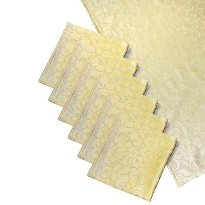 Что может украсить праздничный стол лучше, чем красивое столовое белье? Комплект столового белья имеет грязе- и водоотталкивающую пропитку, что позволит скрыть следы празднования без труда и будет радовать Вас и Ваших гостей снова и снова. В комплекте: скатерть (150×180 см) и 6 салфеток (35×35 см). Материал: 54% хлопок, 46% полиэстер.