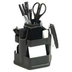 В комплекте: степлер №10, 500 скоб, 2 карандаша, 2 ручки, 20 скрепок, ластик, точилка, линейка, ножницы, нож канцелярский, блок бумаги для записей