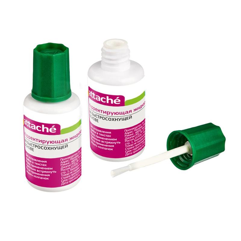 Торговая марка: Attache Economy Состав корректирующих средств (основа): быстросохнущий Вид кисточки: ворс Объем флакона: 14 мл Страна происхождения: Индонезия Схема вложения: 10