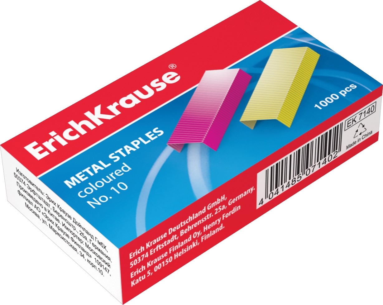 Скобы №10 "Erich Krause" цветные 1000 шт/уп. арт. 7140
