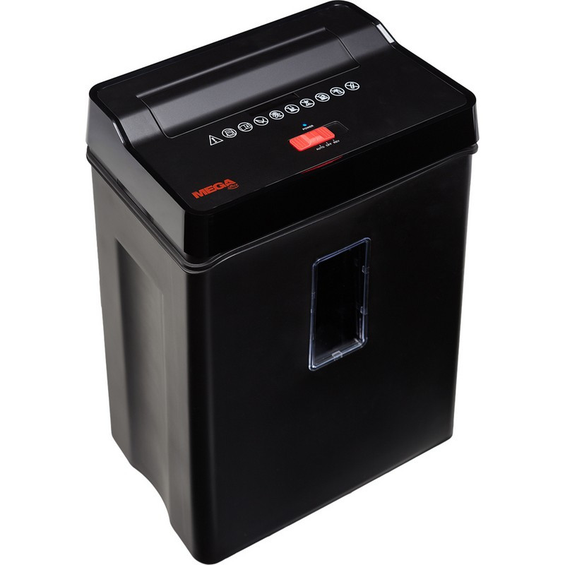 Модель работает методом перекрестной резки и позволяет уничтожить одновременно до 10 листов. Оставшиеся кусочки отправляются в специальную корзину, объемом 23 литра, которая легко изымается и очищается. Корзина оснащена смотровым окошком для наблюдения за уровнем заполнения.