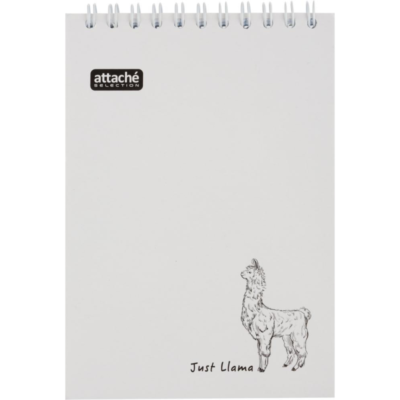 Блокнот Attache Selection Llamas офисного дизайна. Обложка блокнота, выполненная из высококачественного целлюлозного картона, защищает бумагу от деформации. Блокнот, скрепленный сверху по короткой стороне металлическим гребнем (спиралью), состоит из 80 листов (160 страниц). Размер блока: 101x145 мм. Офсетная бумага 100% белизны разлинована в клетку. Блокнот имеет формат А6. Плотность обложки 200 г/кв.м, обложка покрыта глянцевым лаком. Цвет обложки - белый.