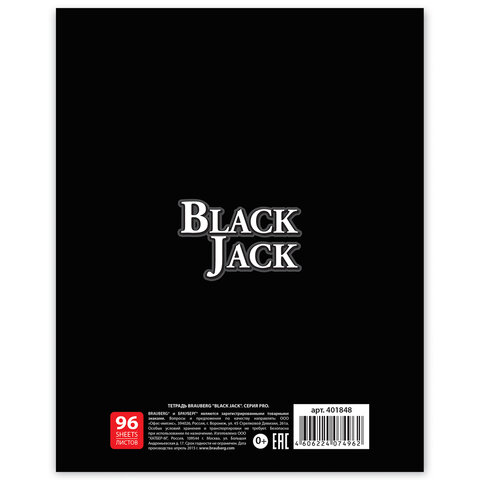 Тетрадь 96 л. клетка А-5 "Brauberg" Блэк Джек арт. 401848