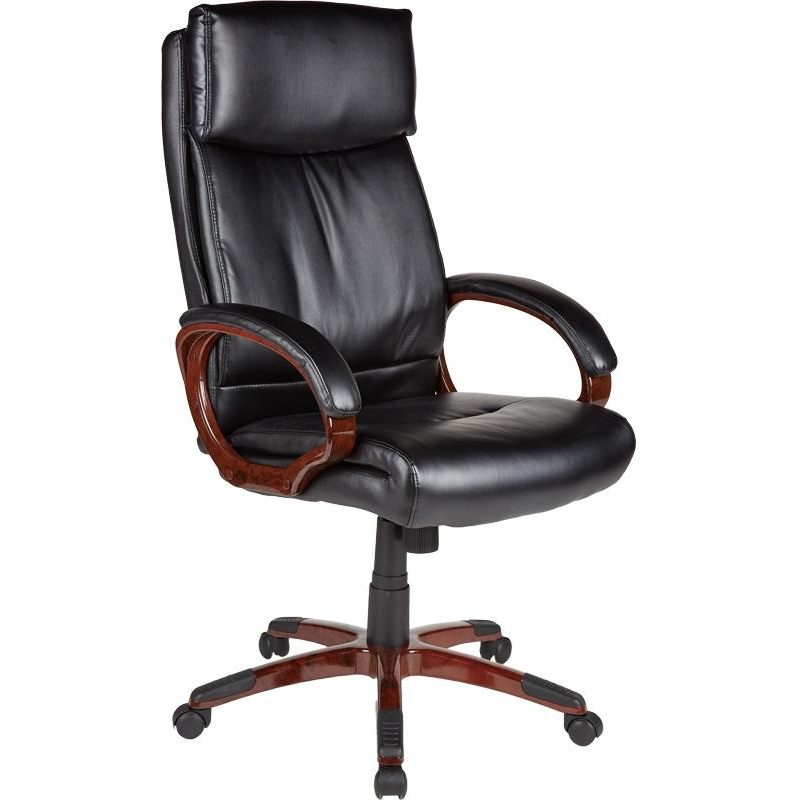 Кресло для руководителя Easy Chair 628 TR с обивкой черного цвета. Лицевые части декорированы рециклированной кожей (изготавливается из переработанной натуральной кожи). Боковины, задняя часть сиденья и спинки выполнены из высококачественной искусственной кожи с учетом фактуры кресла. Крестовина и подлокотники изготовлены из пластика с рисунком, имитирующим натуральное дерево. Подлокотники - с мягкими вставками. Механизм Top Gun позволяет осуществлять свободное качание с фиксацией в рабочем положении. Кресло имеет регулировку по высоте (газлифт).Изображения товаров на сайте не могут гарантировать точную цветопередачу.