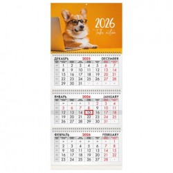 Календарь 2026 г. кварт. на 3-х пружинах 3 блока Brauberg "Умный корги" арт.116803