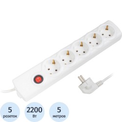 Сетевой фильтр BigTech 5 розеток 5 метров белый BT510-5-W ((5р/5м/10А/2, 2кВт.) |